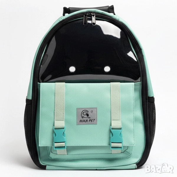 Раница за Носене на Домашен Любимец - Куче/Коте - с Прозорец - 40см/30см/18см - Светлозелена разцветка