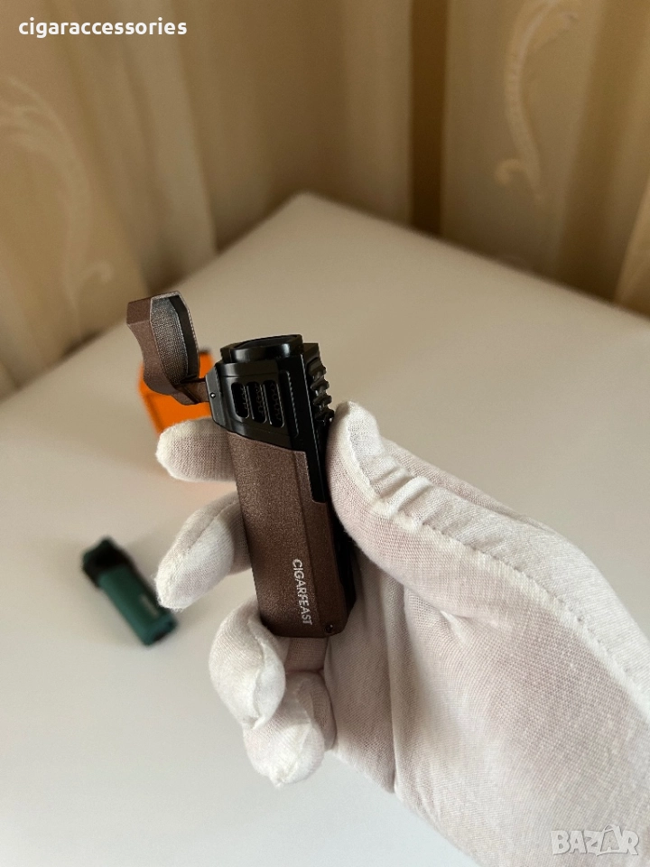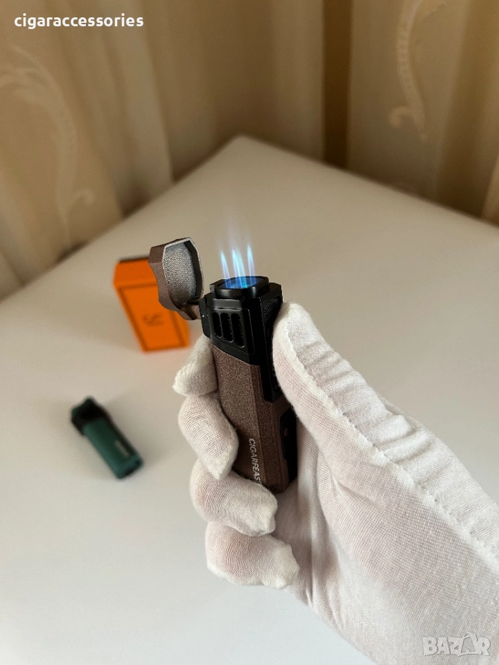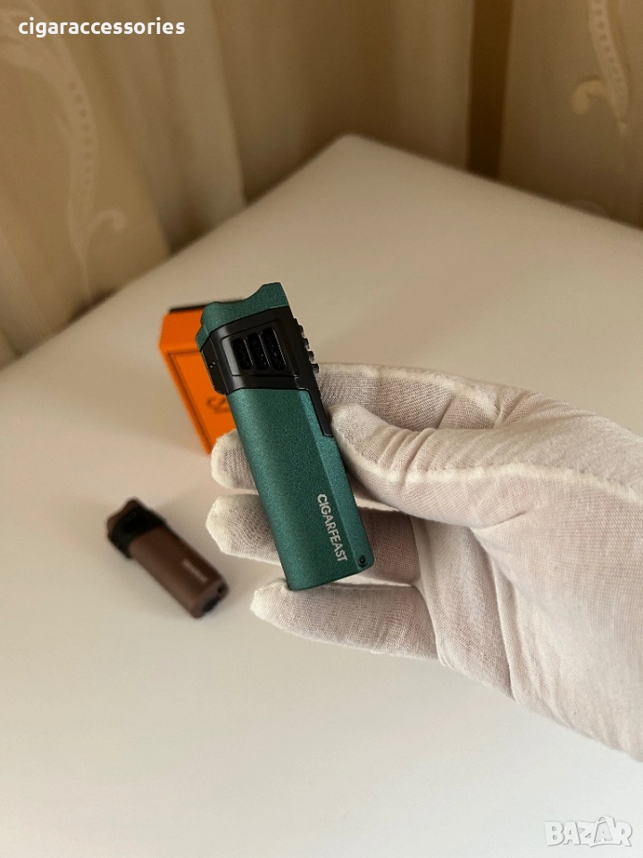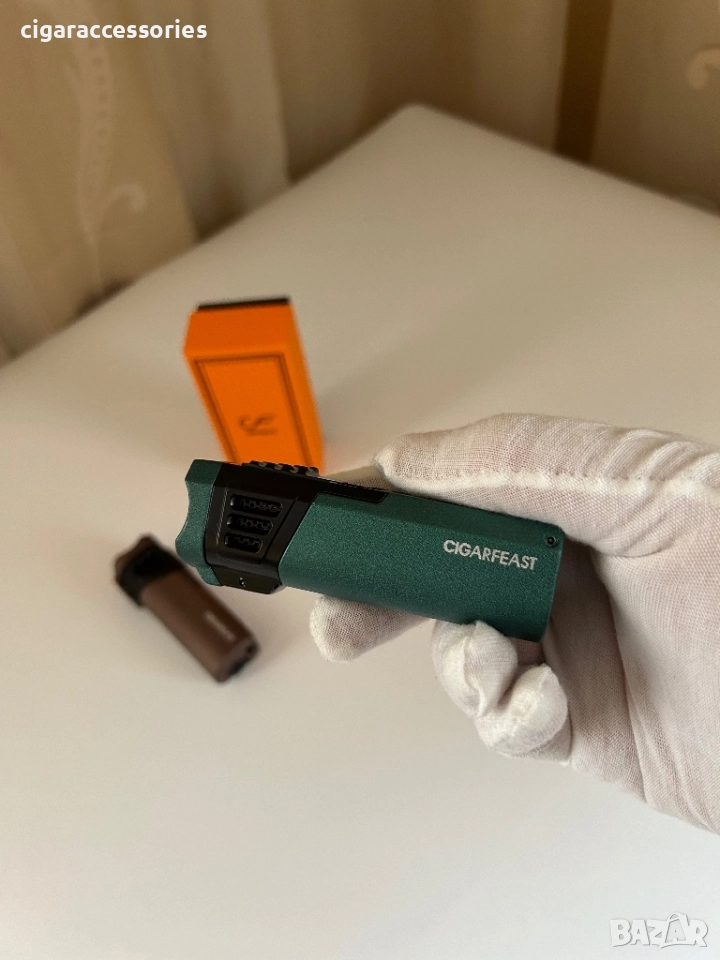 Мощна запалка CIGARFEAST с 4 джет пламъка и вграден пънч за