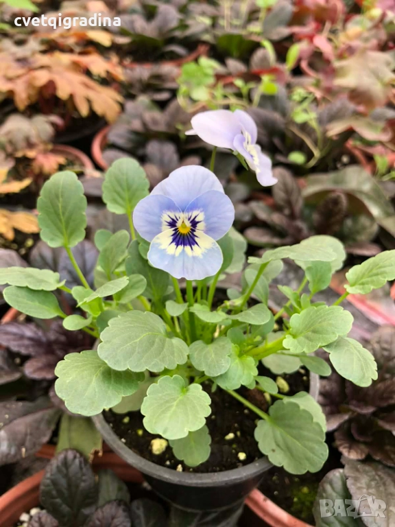 Продавам компактна мини теменужка с наситено сини цветове и дълъг цъфтеж. Подходяща за саксии, балкони и градина. Издържа на студ и се развива лесно, без специални грижи. Отличен избор за пролетно и есенно озеленяване.