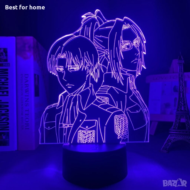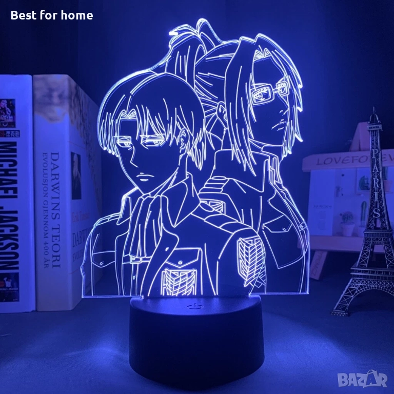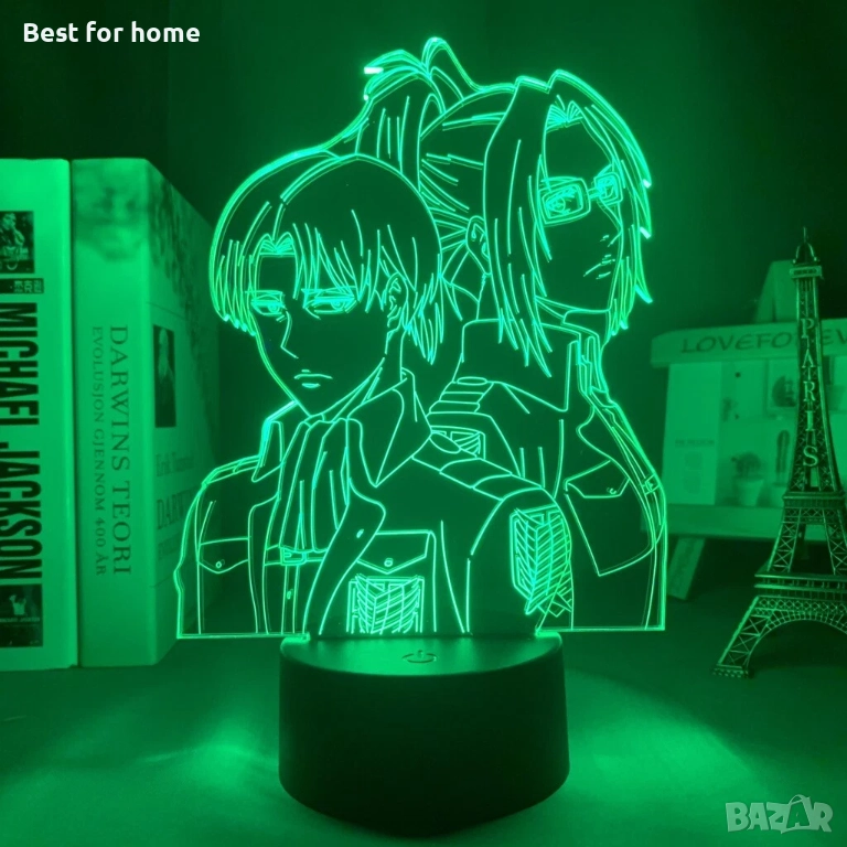 Атрактивна 3D лампа с мотив от популярното аниме „Атака на титаните". Лампата има 7 различни цвята и се захранва чрез USB кабел. Идеален подарък за фенове на анимето.