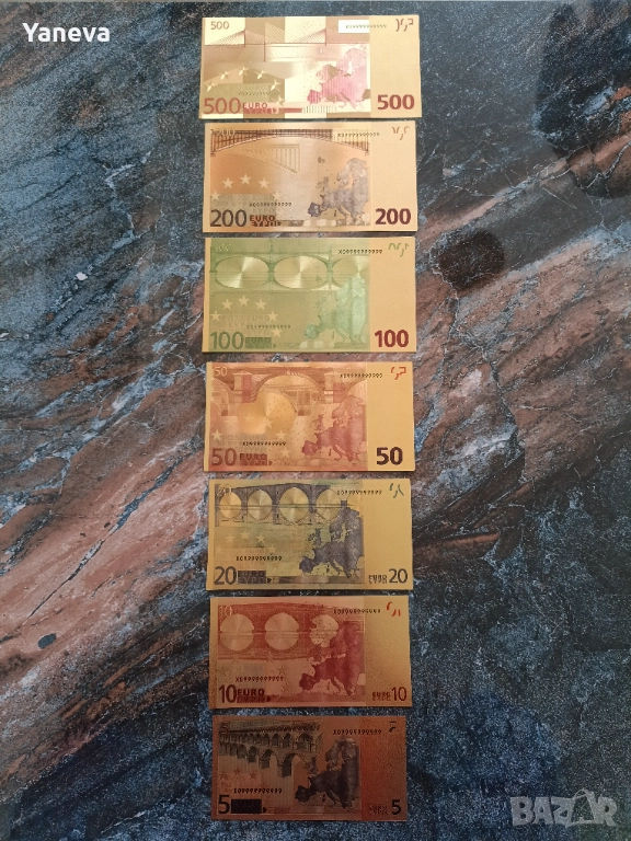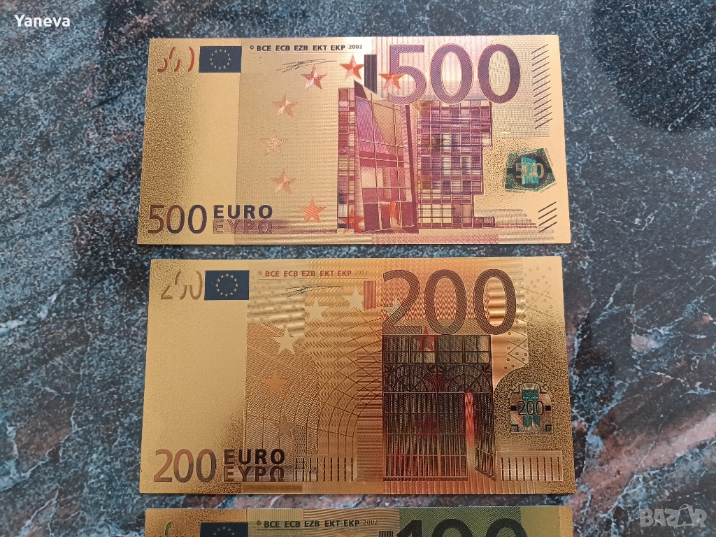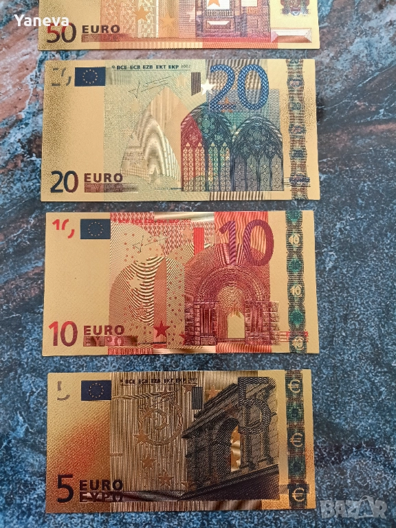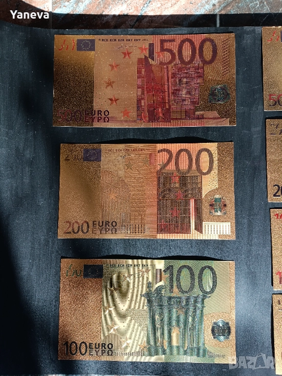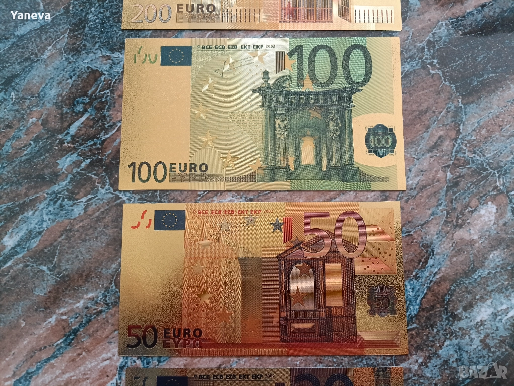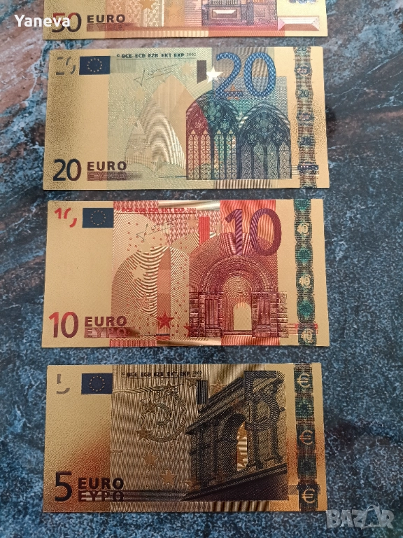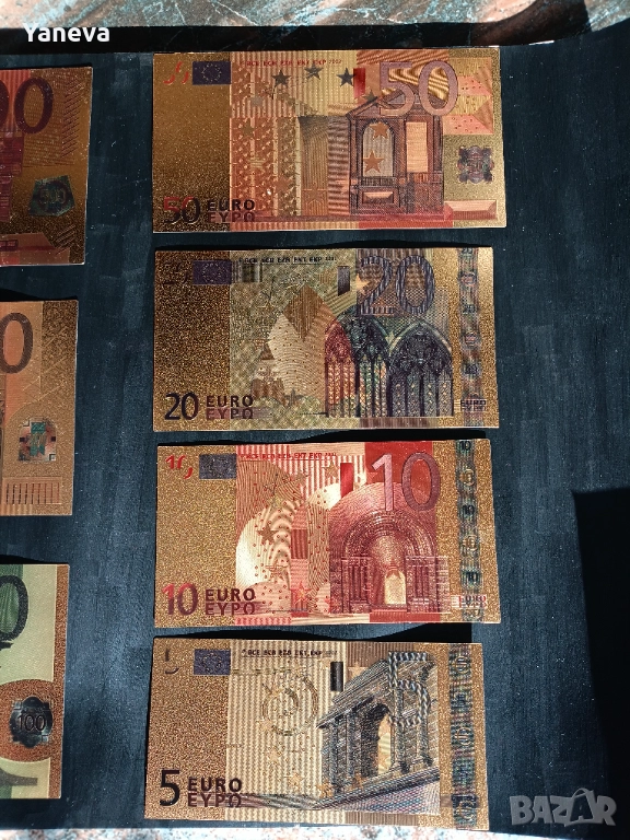Евро банкноти, златисти , двустранни плакети в рамка с размер 45 / 30 см. → Обява 52800775