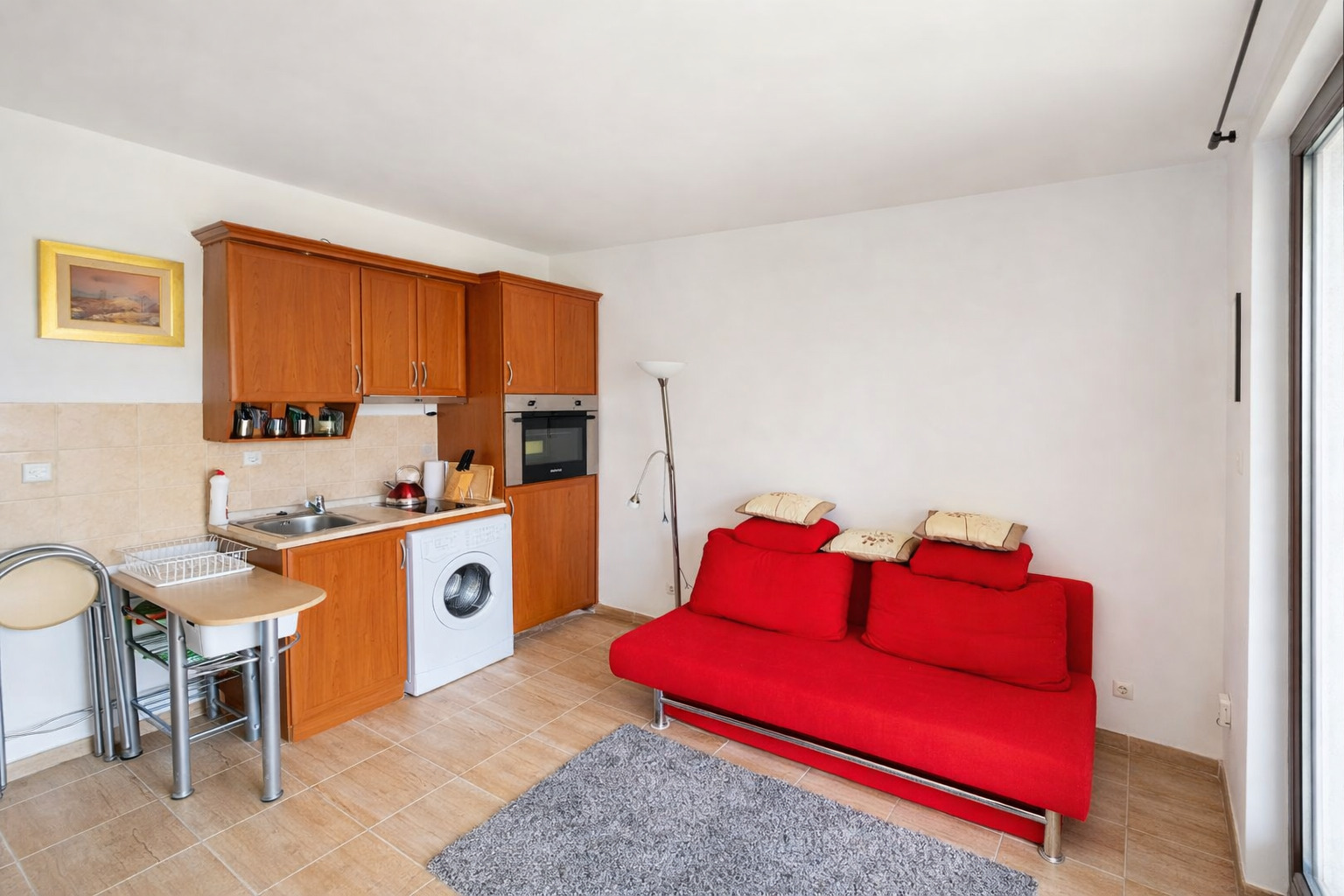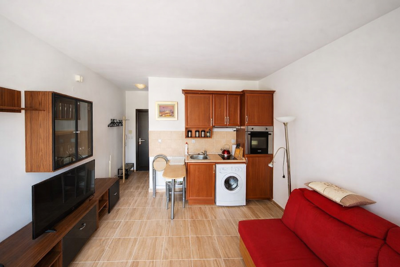 Титан Пропъртис офиа - Черни връх с радост предлага на Вашето внимание едностаен апартамент за продажба в Голф клуб ибър, област София. Жилището от 40 кв.м. е разположено на първи етаж в двуетажна тухлена сграда. С изложение на юг то получава обилна естествена светлина през целия ден. Функционалният план включва една стая с кухненски бокс и баня с тоалетна. Апартаментът се предлага обзаведен и с отопление на електричество. Идеален за инвестиция или първо жилище, имотът съчетава практичност и лесна поддръжка.