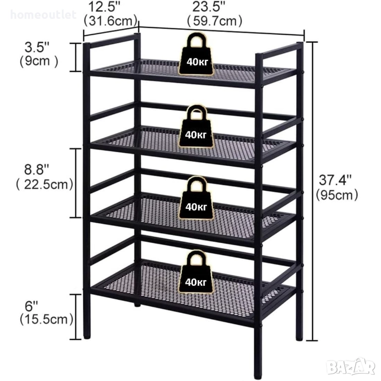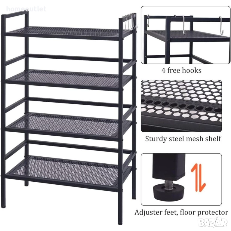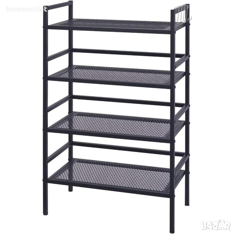 4-степенният метален рафт има плътно черно защитно покритие, което предотвратява ръжда.