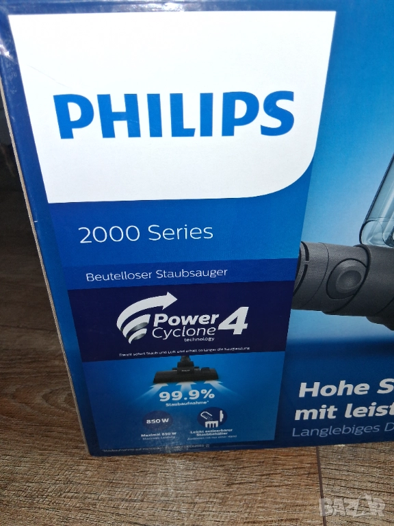 Прахосмукачката Philips 2000 Series с мощност 850 W е безторбен модел, предназначен за ефективно почистване на дома. Тя използва