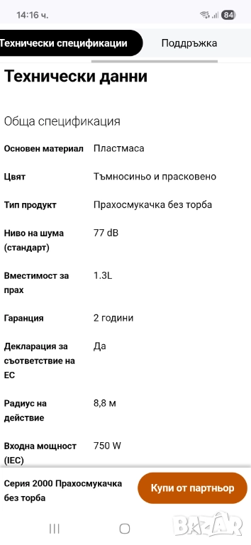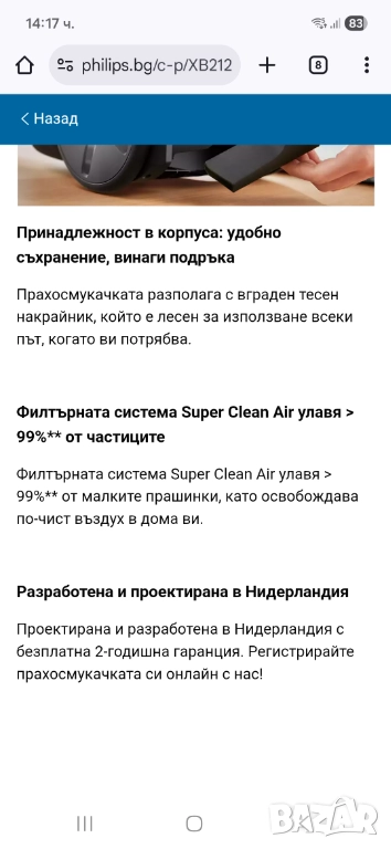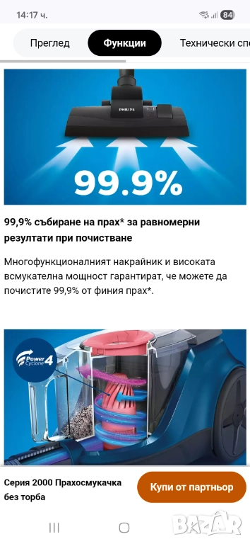 Филтрация: Система Super Clean Air, която улавя над 99% от фините прахови частици, осигурявайки чист въздух в дома.