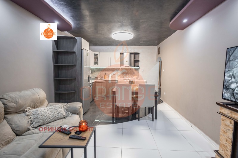 Агенция за недвижими имоти Ориндж Естейт представя на вашето внимание двустаен с големина 65,28 кв.м. ПРЕУСТРОЕН В ТРИСТАЕН- ремонтиран, със следното разпределение: родителска спалня, детска, всекидневна с кухня, баня с тоалетна и коридор. Апартаментът има голяма слънчева южна тераса към всекидневната, с гледка към планината. Всички мебели и уреди са ползвани съвсем за кратко. Апартаментът няма нужда от ремонт!!! Имотът се продава във вида от снимките.