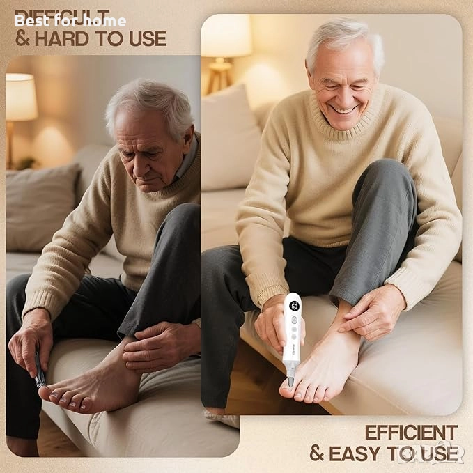 Мощен комплект за нокти за домашна употреба: Тази електрическа пила за нокти на краката за дебели нокти може лесно да се справи с лющещите се крака, сухите и напукани зарастващи тъкани, както и да помогне при дебели нокти и проблеми с грижата за ръцете. Спестете си време, посещавайки салон за крака, и се насладете на професионален маникюр и педикюр със салонно качество у дома.