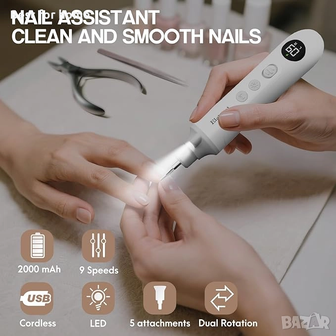 Комплект за маникюр и педикюр Eletorot за жени, безжични електрически пили за нокти, акумулаторна бормашина за нокти, електрическа пила за нокти на краката за дебели нокти, премахване на кожички и мазоли.