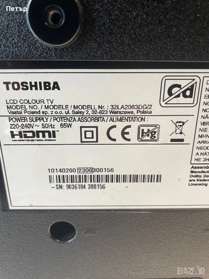 Toshiba 32LA2063DG/2 → Обява 52802042