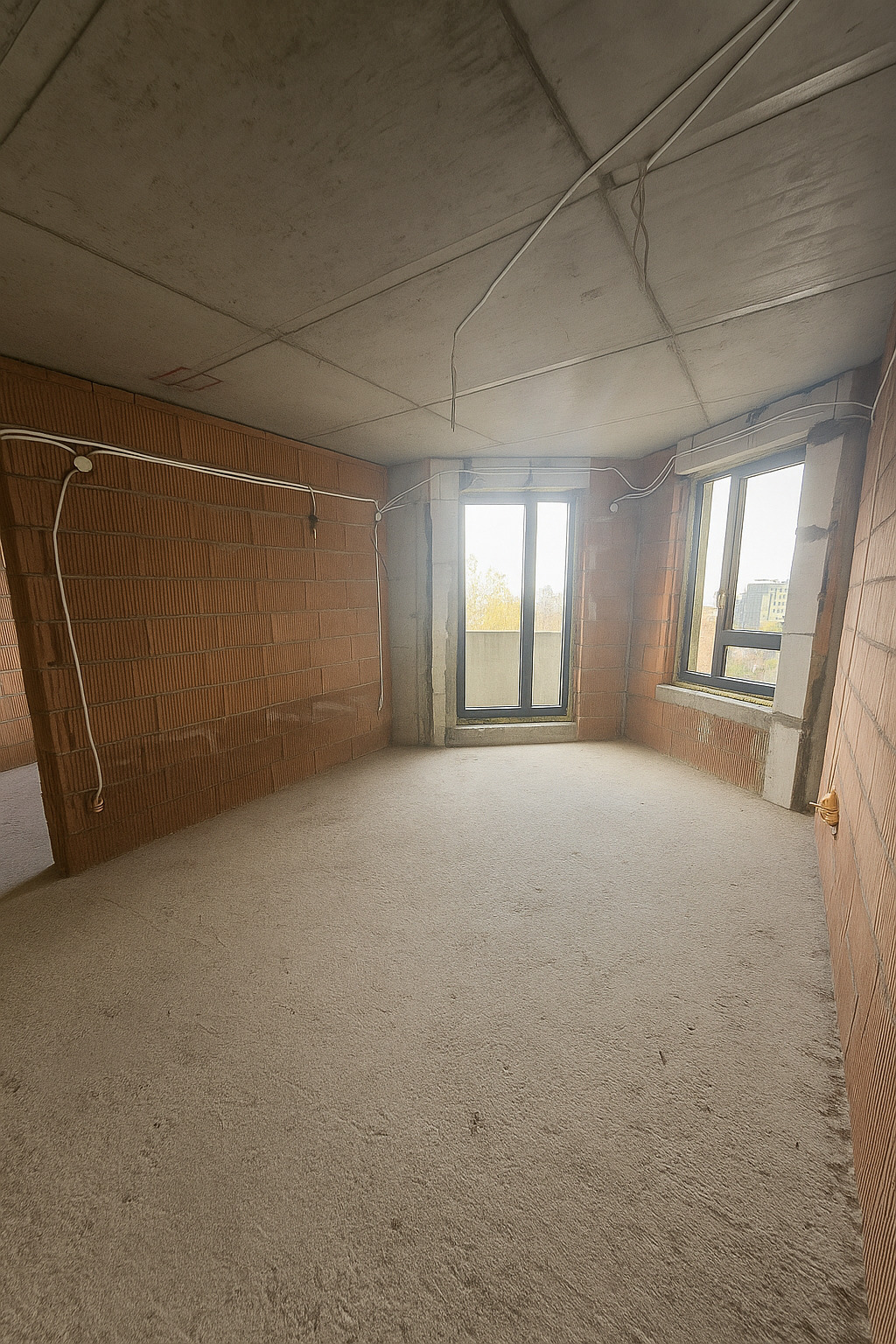Апартаментът се издава на шпакловка и замазка, с висококачествени френски прозорци, 6-камерна немска дограма REHAU и троен стъклопакет. Сградата е с изключително нисък процент общи части и висока светла височина от 2,67 м. Очаква се да получи Акт 16 през есента на 2026 г., като към момента е на етап Акт 14.