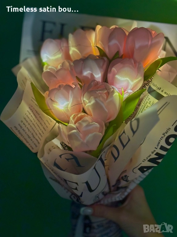 • Висококачествени сатенени рози и лалета, които не избледняват.