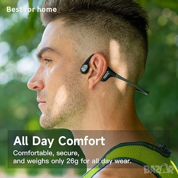 Mojawa Run Air (Mojo 2) IP67 Водоустойчиви безжични Bluetooth слушалки с отворен уши за спорт на открито с дълбок бас за бягане, колоездене и тренировки, черни.