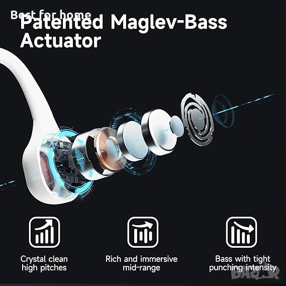 Специална функция Леко тегло 26 г, бързо зареждане за 50 минути, лесно управление на силата на звука с докосване, ергономично разпределение на гравитацията, дизайн за сигурно прилягане, патентована звукова технология Maglev-Bass