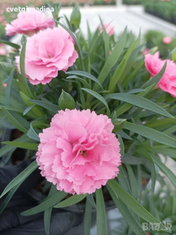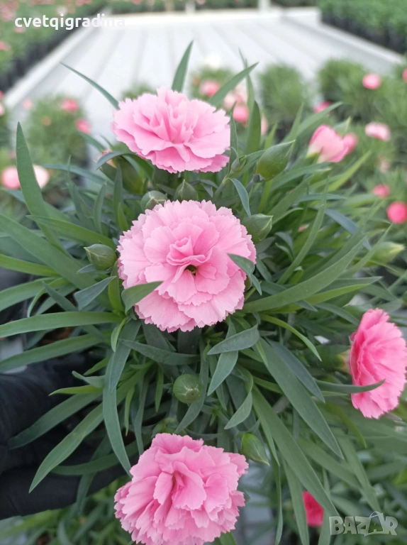 Продавам компактен светлорозов карамфил със силен и приятен аромат. Подходящ за саксии, балкони и градина. Цъфти обилно, лесен е за отглеждане и придава цвят и аромат без много грижи.