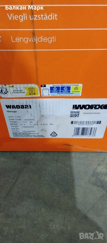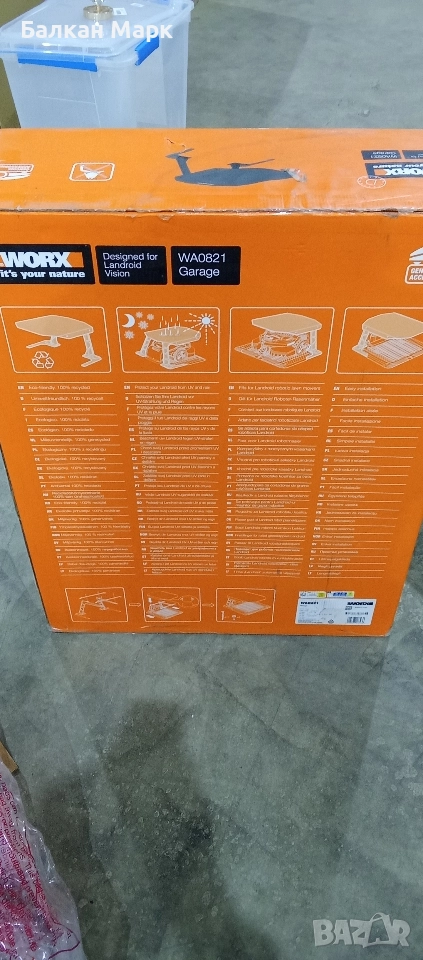 Продавам гараж Worx Landroid WA0821, втора употреба, част от разнообразна палетирана стока – внос от Германия.