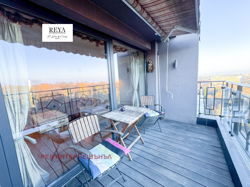 Имотът е с площ от 180 кв.м и се намира на 8-ми, последен етаж в добре поддържана сграда с асансьор, строителство от 1970 г., със скорошно извършен основен ремонт на покрива. Апартаментът се отличава с уютна и артистична атмосфера, както и с впечатляващи панорамни гледки към цяла София и планина Витоша.