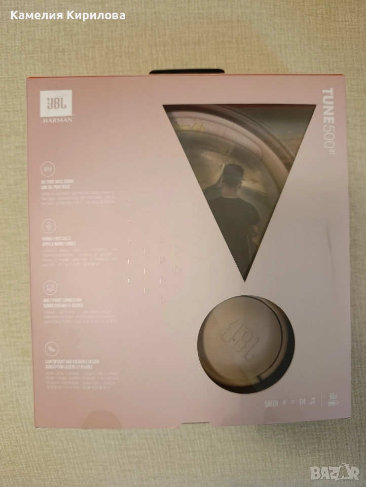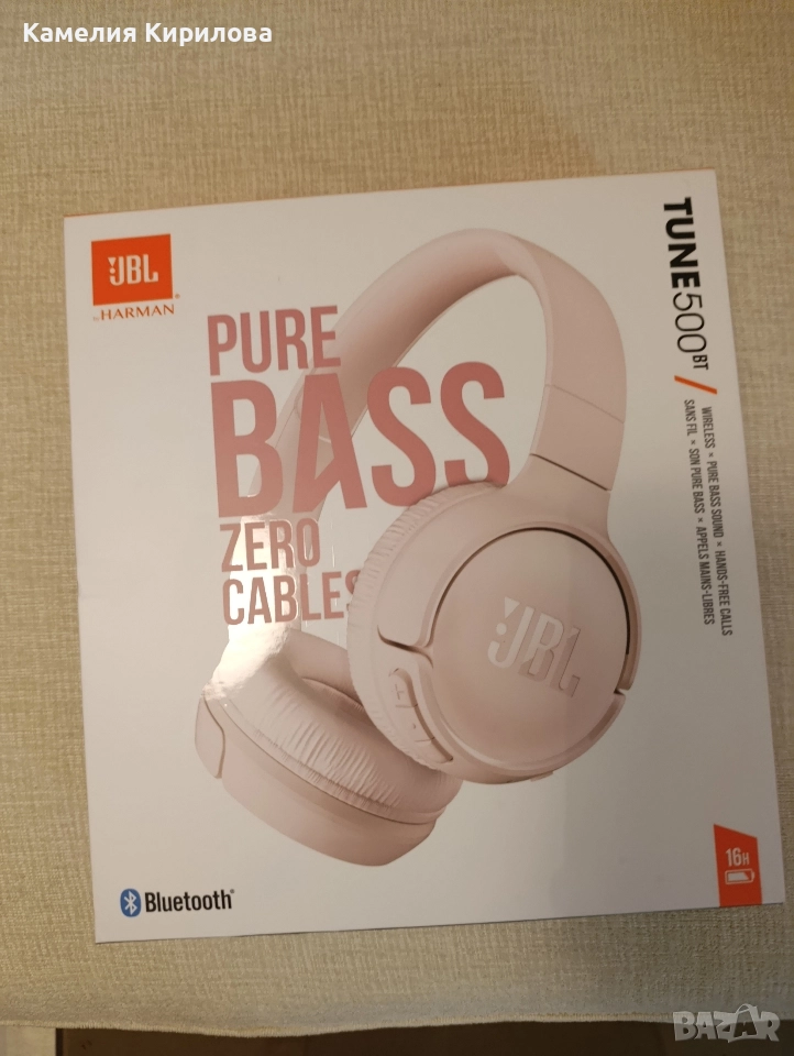 Безжични слушалки на марката JBL 500. Работят нормално, но много ме дразни,че се обелиха и си взех нови. Продавам ги с оригиналната им опаковка и кабела към тях.