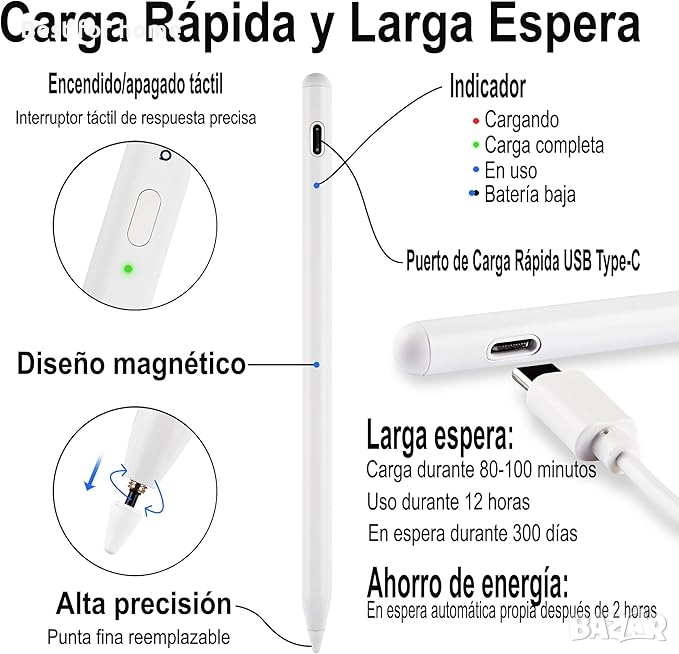 Сензорна писалка Antika с магнитна функция и стилус с висока чувствителност за Android, съвместима с HP/Samsung/iPhone, таблетна писалка.