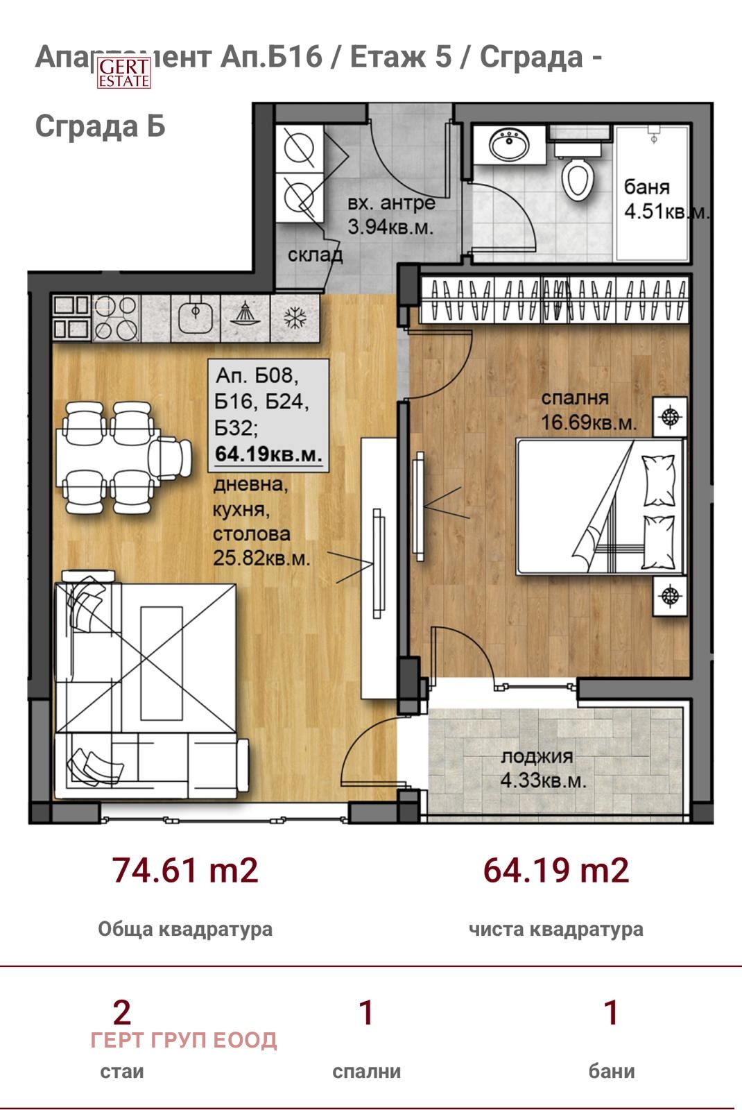 Проектирани са зелени площи и зона за отдих, осигуряващи спокойна и приятна среда за живущите и техните семейства.Предлагат се едностайни, двустайни и тристайни апартаменти, подходящи както за собствен дом, така и за инвестиция с добра възвръщаемост.