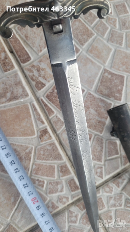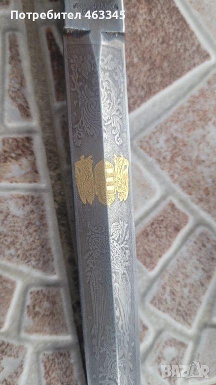 Унгарски кортик на кралската охрана!!! Кортикът е даден на офицер през 1927 г и е съответно лично гравиран. Кортикът е невероятен - със сребърна кания без очукано и подбито. Носи държавния герб. Острието на кортика е перфектно, без грам ръжда или язви, маркирано и със златна апликация от едната страна. Дръжката е без спукано и отчупено. Изключителен колекционерски образец.