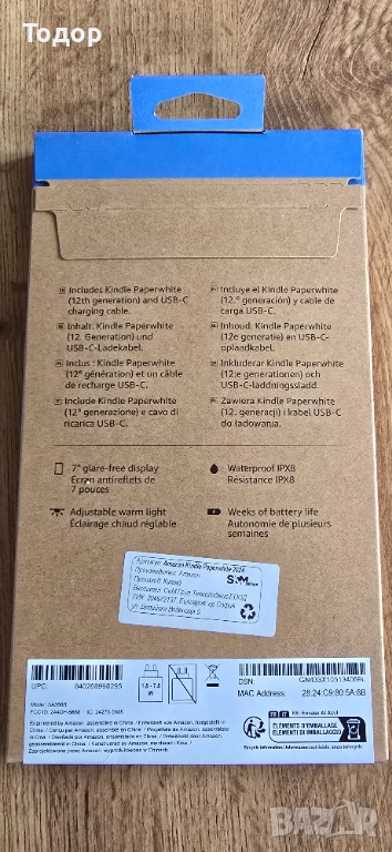 Продавам Amazon Kindle Paperwhite, 12-то поколение, с 16 GB памет, в черен цвят. Устройството е чисто ново !!!