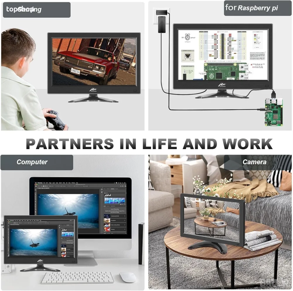 【Широка употреба】: 13,3-инчовият монитор има четири различни входни порта, HDMI/VGA/BNC/AV видео входове за Raspberry Pi/PC/лаптоп/видеокамера/DVD/CCTV/кухненски монитор и др. Многофункционалните портове ви дават повече възможности за избор, за да отговорите на различните си нужди.