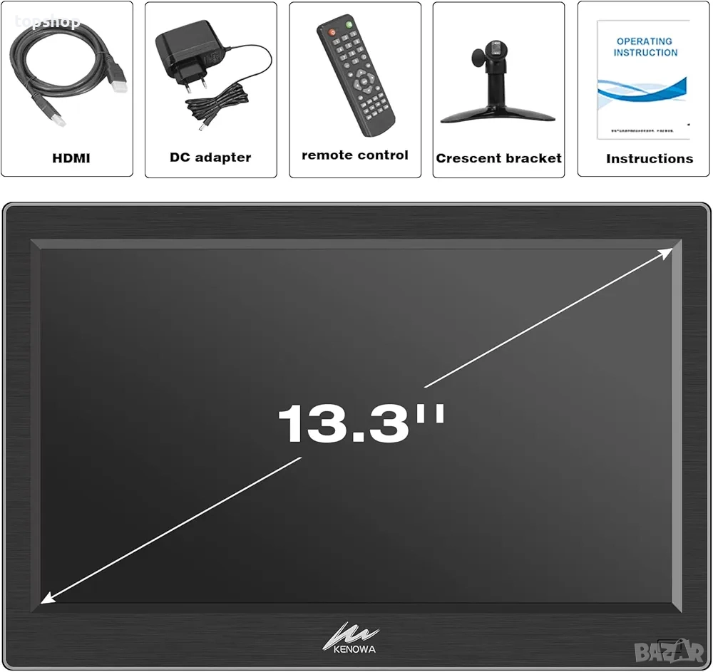 Чисто нов Kenowa 13.3-инчов малък HDMI PC монитор HD 1366x768P LED екран HDMI/VGA/BNC/USB/AV порт...