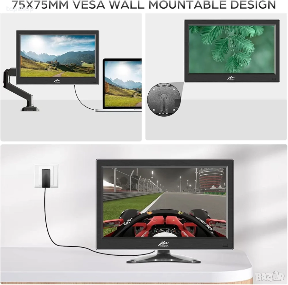 【ЛЕСЕН ЗА ИНСТАЛАЦИЯ】: Малкият монитор се предлага със стойка за плот, която ви позволява да монтирате монитора си гладко на работния плот. Мониторът поддържа VESA монтаж 75 мм * 75 мм, което е удобно за окачване на стена и спестяване на място на работния плот.