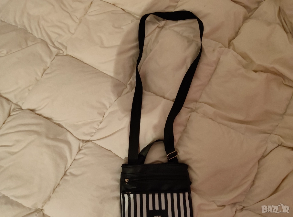 Оригинална чантичка за през рамо на Ювентус, рядък модел произведен от италианския дизайнер Enzo Castellano, ширина 21 см, височина 24 см, четири джоба (два отпред,един в средата, и един от задната страна), отлично състояние неразличимо от ново.