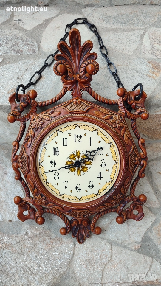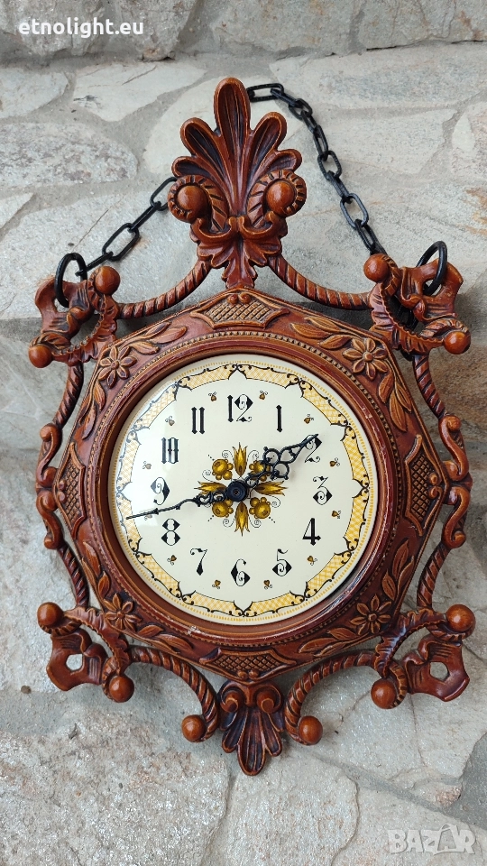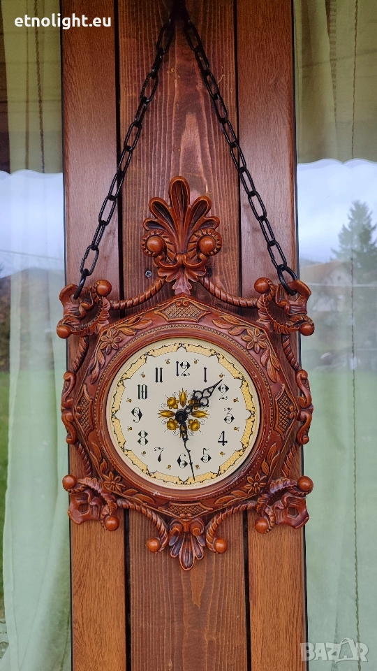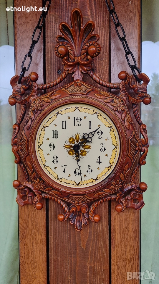Винтидж стенен часовник с красиви орнаменти и циферблат, със синджири → Обява 52805862