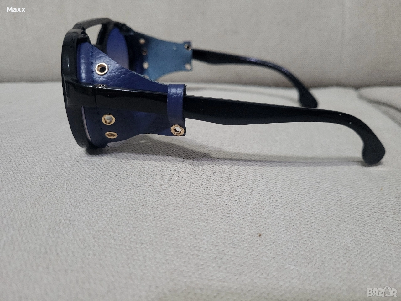 Продавам нови черни слънчеви очила. Едните са със синя плака и кожа, дугите са с черна. Унисекс модел. Цената е за брой.
