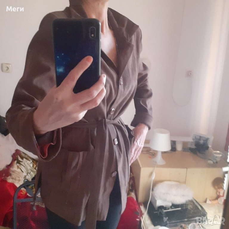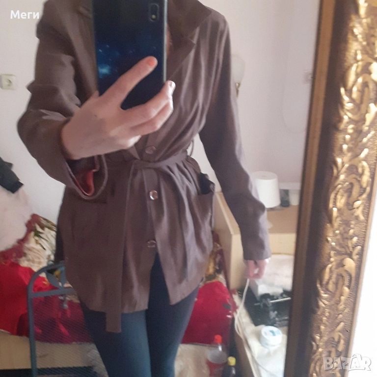 Дамско яке,с колан в тьмно кафяв цвят.Приатна и елегантна дреха