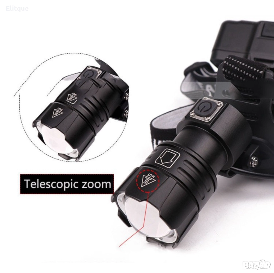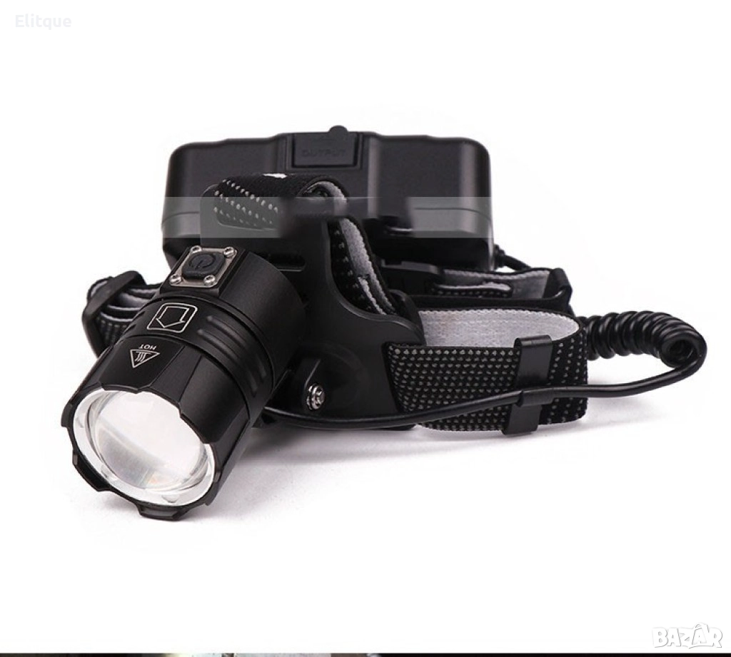 Мощен фенер за глава 1500 Lumen с USB голям обектив и крушка XHP70 → Обява 52806199