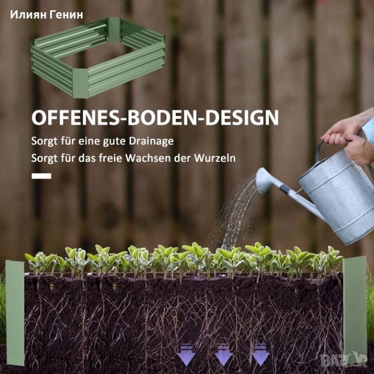 Отворено дъно: Осигурява добър дренаж. Освен това, отвореният дизайн на билковото легло осигурява безпрепятствен растеж на растенията, като спомага за развитието на дълбока коренова система и усвояването на повече хранителни вещества.