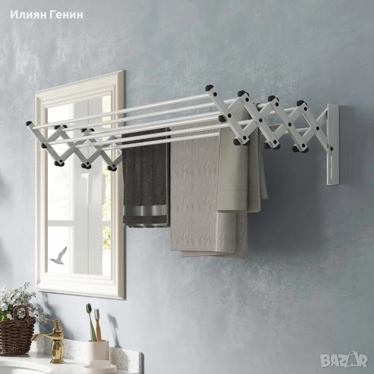 Дизайн, пестящ място: Този разтегателен, стенен сушилник за дрехи използва оптимално наличното пространство и може да побере няколко кърпи – идеален за по-малки помещения.