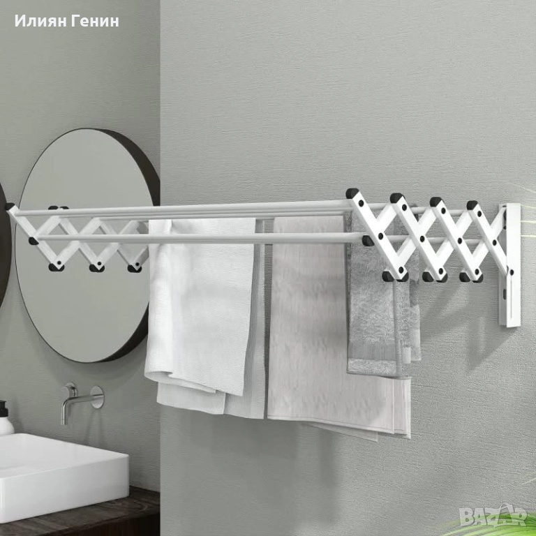 Модерен вид: Добавете стилен щрих към банята си с този елегантен стенен сушилник за дрехи в сребристо и черно, който се вписва идеално във всеки декор.