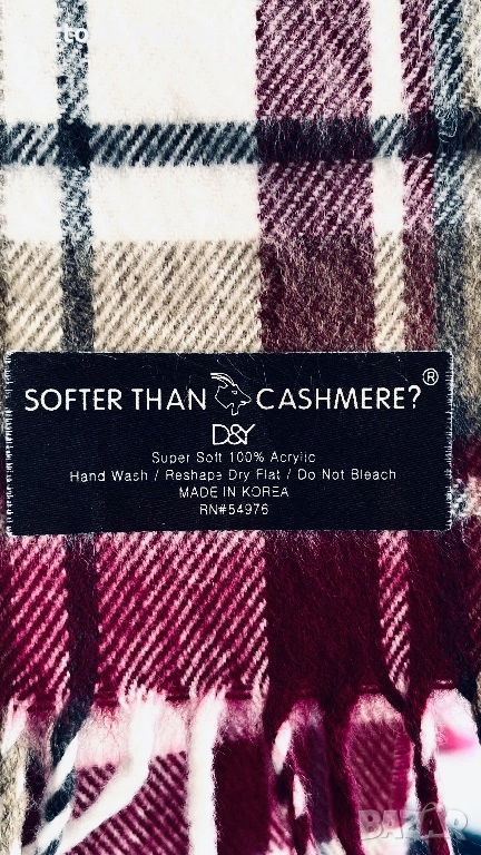 Шал в класическо каре, вдъхновен от BURBERRY NOVA CHECK . Супер топъл и мек - от серията Softer Than Cashmere ( David & Young), който наистина се усеща по- мек от кашмирените шалове. Не дразни кожата, лек е, отлично топли през зимата. Винено бордо, бяло, сиво с черни линии - вечна класика. Голям 30см на 165см, ресни за автентичен вид. Уникален детайл: бродиран монограм RGZ - изглежда луксозно и индивидуално.