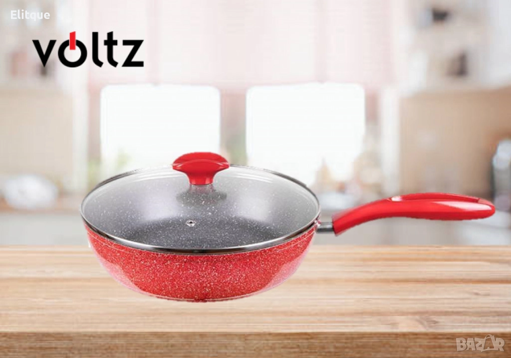 Тиган Voltz, 24см./26см., Дълбок с капак, Мраморно покритие, Индукция, Червен