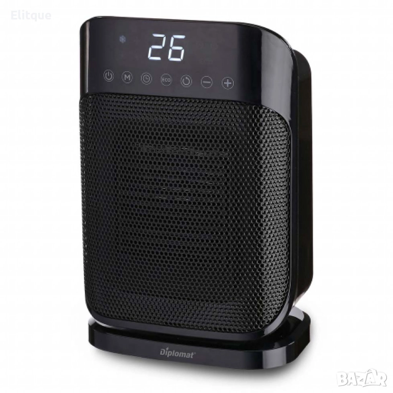 Вентилатор 30% по-високо топлоотдаване Сензорен панел за управление с тъч бутони LED дисплей Режими „в готовност“ и Еко 24-часов таймер Настройка на температурата Работна площ: около 15 м2 Широкоъгълна 85-градусова осцилация Защита против прегряване Система против замръзване Размери (ШхВхД): 195x152x290 мм Водо- и прахоустойчивост: IP21 1800W, 220-240V/ 50-60Hz .