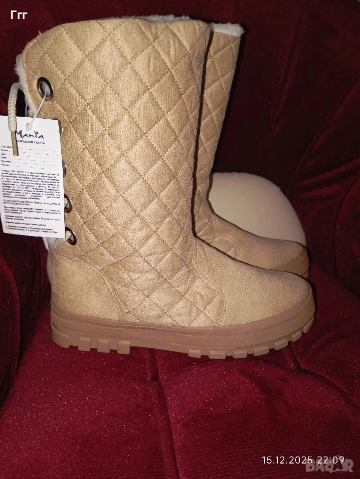 Нови дамски зимни ботуши. С пух, много меки и топли и връзки. Размер 38, 24см стелка. Нямат кутия.