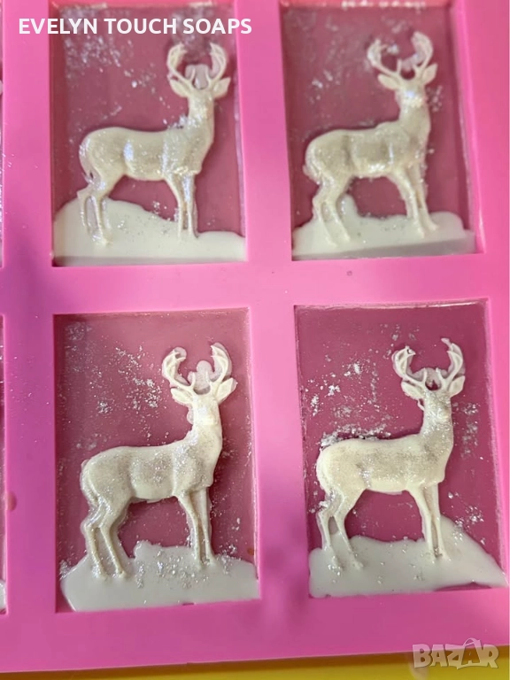 Ръчно изработен коледен сапун с релеф на елегантен елен, покрит с фин снежен блясък. Ароматът е сладък, свеж и празничен – вдъхновен от класическото захарно бастунче. Комбинира леки нотки на ванилена сладост, прохладна мента и захарен аромат, който носи усещане за Коледа.
