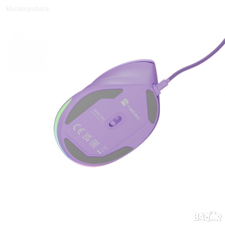 Natec Vertical Mouse Crake 2 Pro Жична оптична мишка- 12800DPI, RGB, 6 бутона, Лилава → Обява 52807318