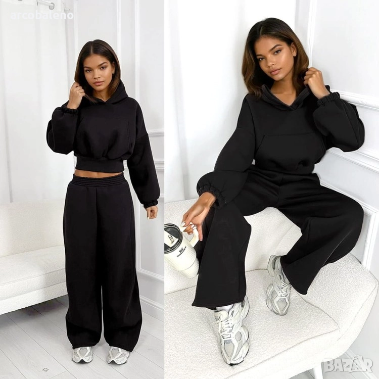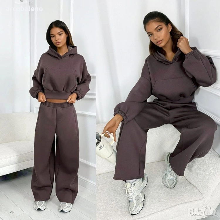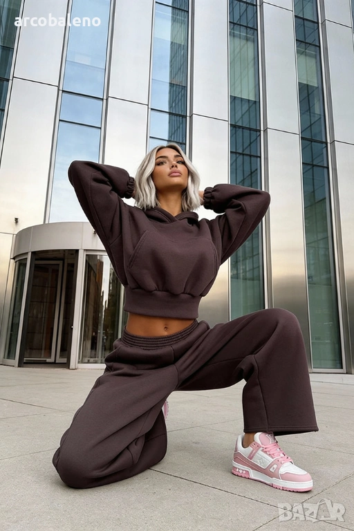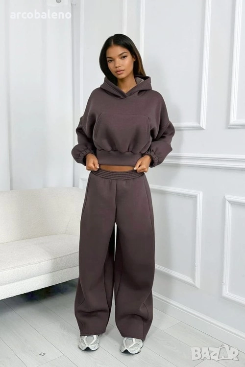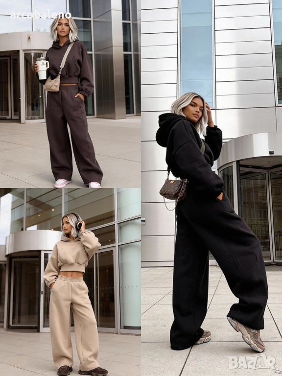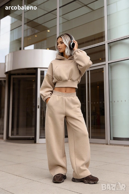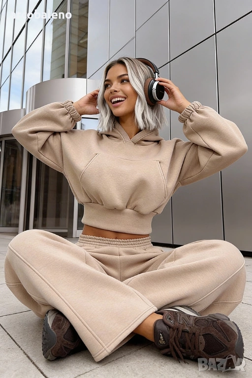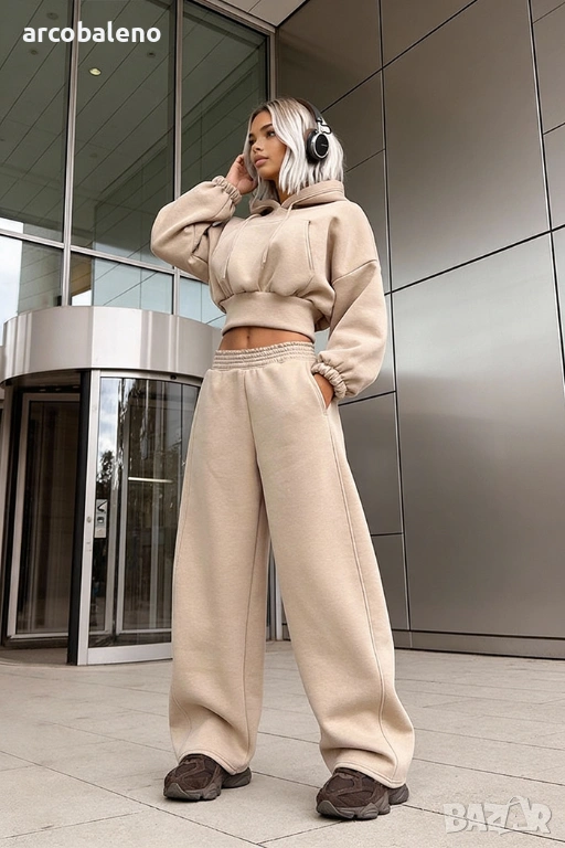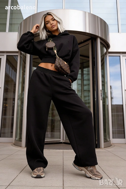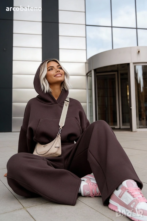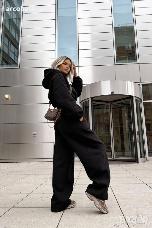 Широки, овърсайз панталони Balloon и суитшърт с голяма качулка и връзка на талията. Най-удобният, ултра голям и дебел – точно това, което обичате най-много!