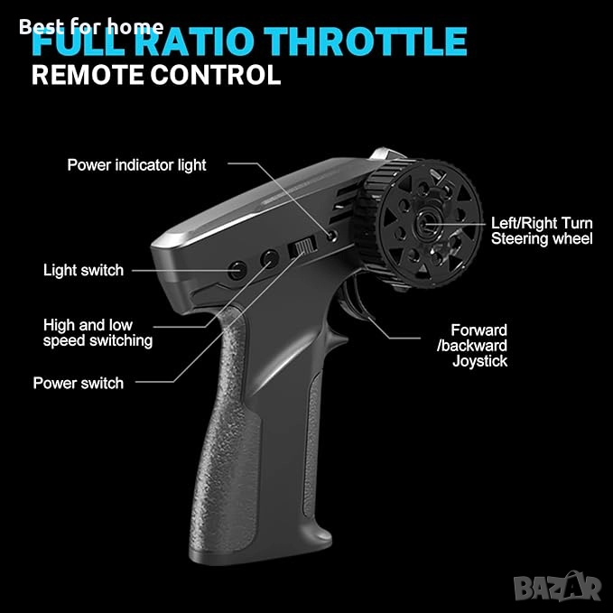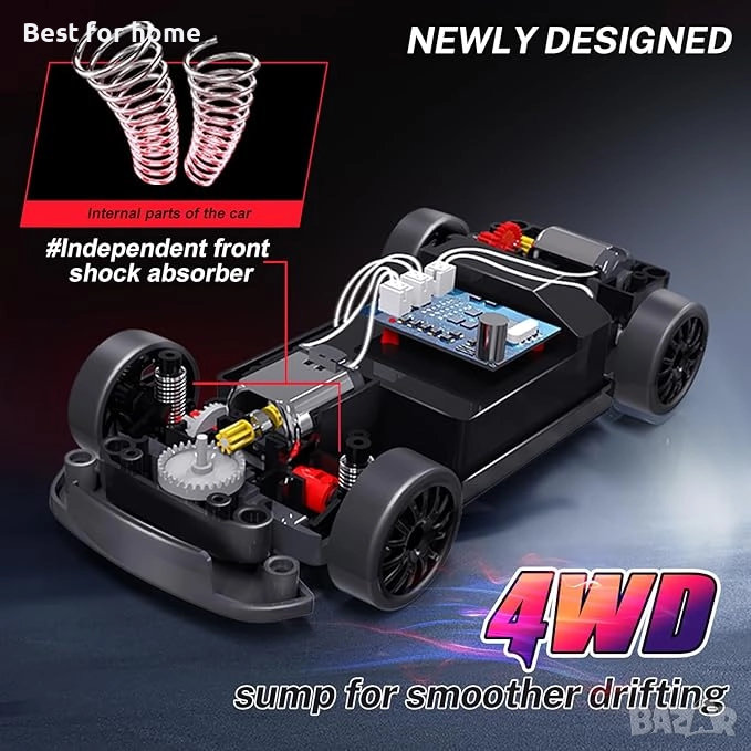 【4WD и пълна дроселова клапа】 има система за задвижване на четирите колела, която разпределя мощността рационално по време на завой, с повече въртящ момент за по-плавен дрифт. В същото време има прогресивен регулатор (ускорител с пълно съотношение), което прави ускорението по-линейно и по-реалистично от шофирането.
