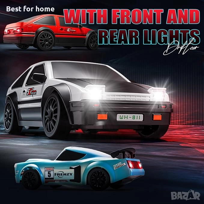 【Високоскоростна RC дрифт кола】Мащаб 1:24, този размер позволява свобода на движение из дома ви, максималната скорост достига 20 км/ч. Разстоянието на дистанционното управление е 50 м, което позволява по-голямо разстояние на управление от подобни продукти.
