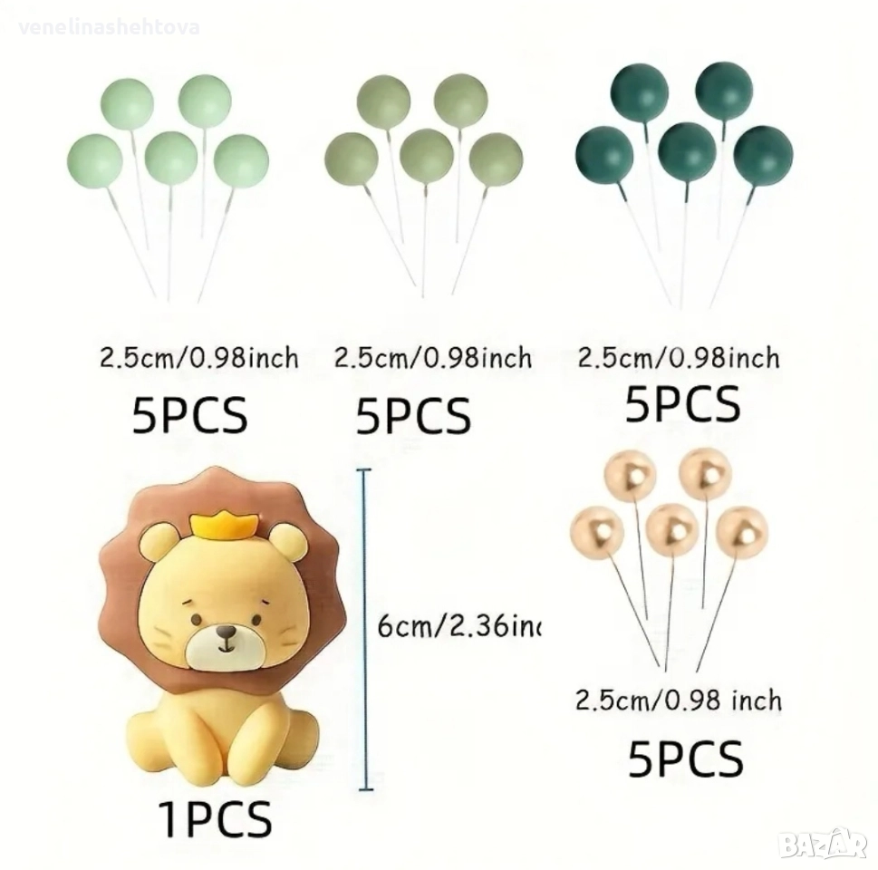 Комплект фигурка лъв лъвче топчета топки на тел декорация на торта → Обява 52808786