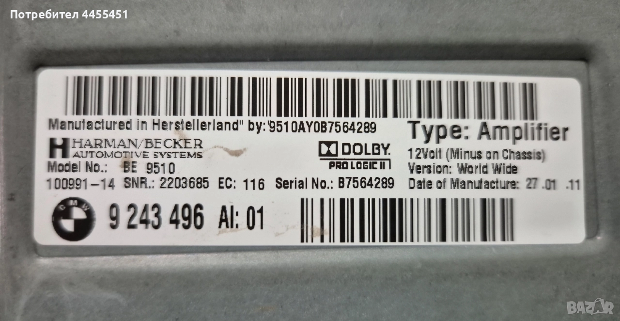 усилвател DSP Top HiFi Harman Becker BMW F07 F10 F11 F06 F12 F13 → Обява 52809592