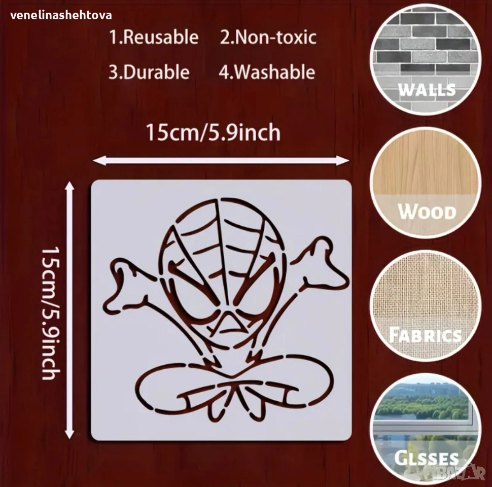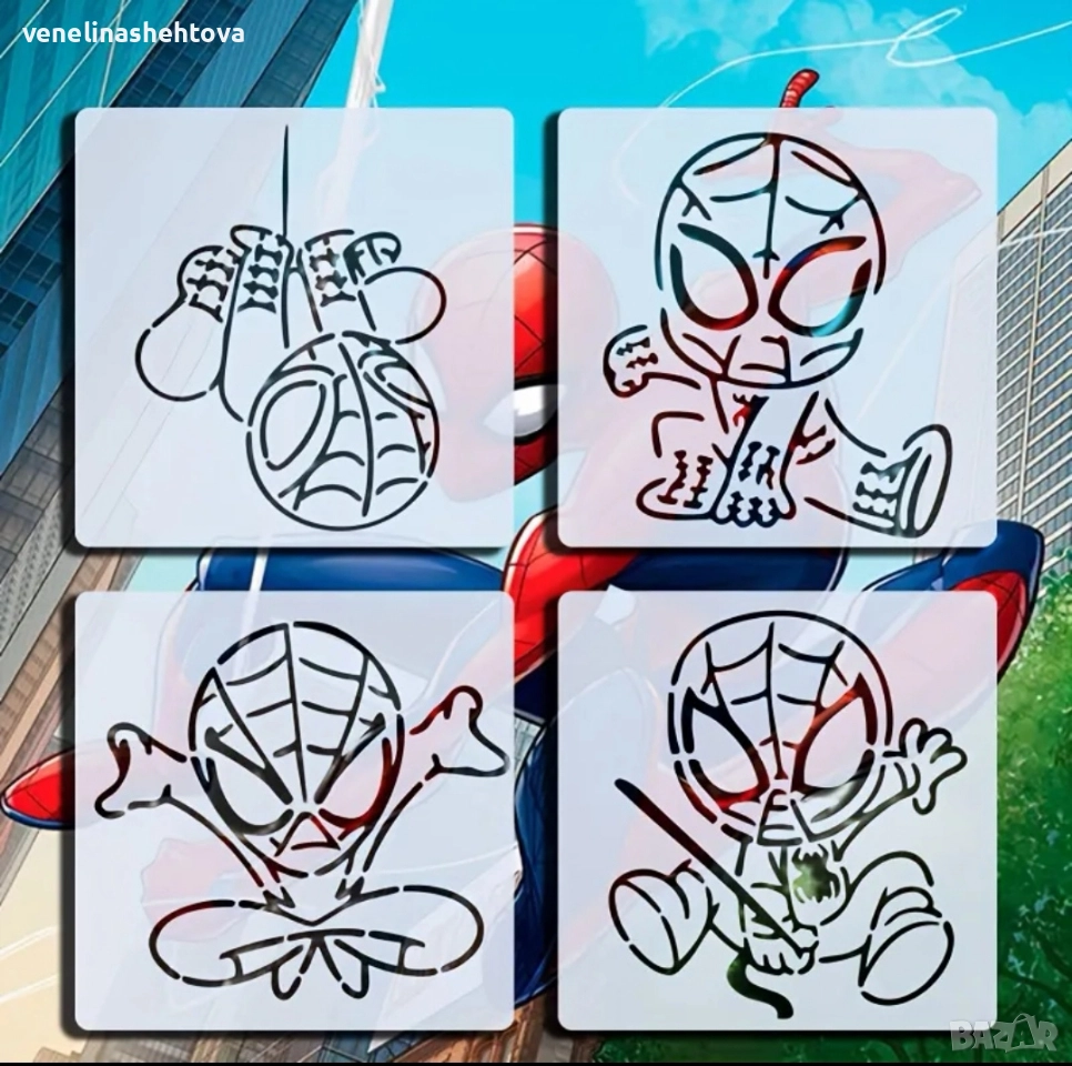 4 броя Спайдърмен Spiderman шаблон стенсил декорация торта скрапбукинг текстил дърво , снимка 1 - Други - 52809726 4 броя Спайдърмен Spiderman шаблон стенсил декорация торта скрапбукинг текстил дърво , снимка 2 - Други - 52809726 4 броя Спайдърмен Spiderman шаблон стенсил декорация торта скрапбукинг текстил дърво , снимка 3 - Други - 52809726 1/3