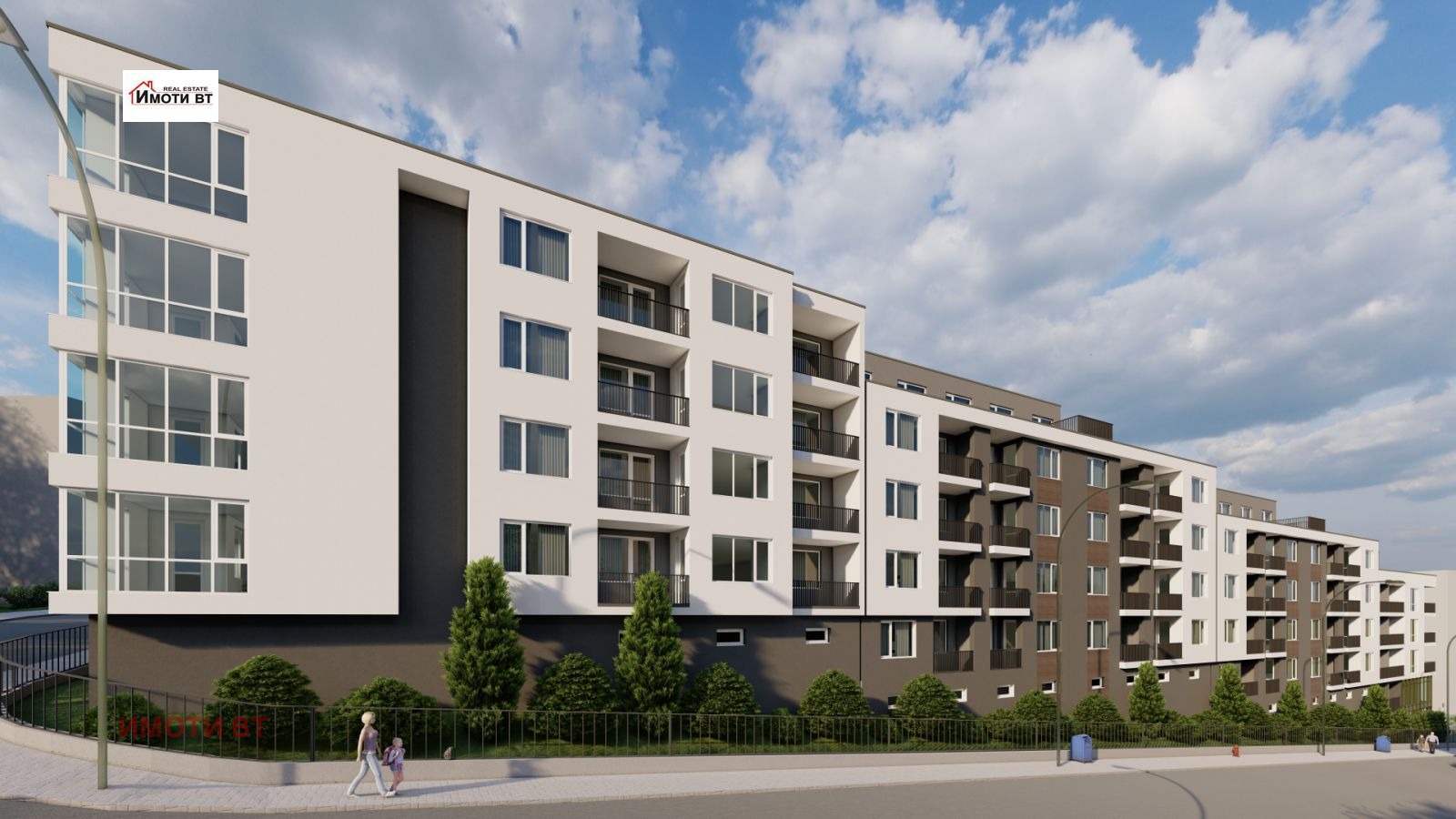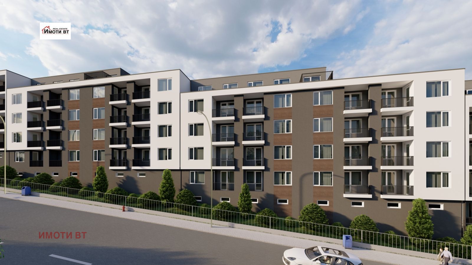 ИМОТИ ВТ продават тристаен апартамент в новострояща се луксозна сграда. Апартамента се състои от просторна дневна с трапезария и кухненски бокс, две големи спални, коридор, баня и тоалетна, тераса и мокро помещение.