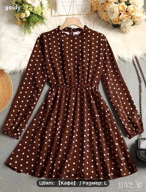 Дамска елегантна рокля на точки, снимка 1 - Рокли - 52810802 Дамска елегантна рокля на точки, снимка 2 - Рокли - 52810802 Дамска елегантна рокля на точки, снимка 3 - Рокли - 52810802 1/3